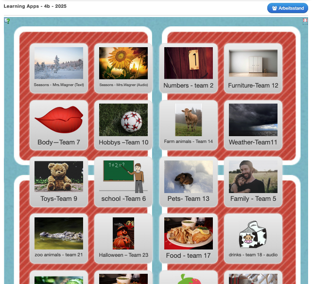 Die Funktion „Kollektion erstellen“ bietet als zweites Nutzungsszenario die Möglichkeit, einen Arbeitsraum einzurichten, in dem Lernende eigene LearningApps gestalten können. Das testete ich am Ende des Schuljahres in Klasse 4, als die Schülerinnen und Schüler bereits über einen breiten Wortschatz zu verschiedenen Themen verfügten.