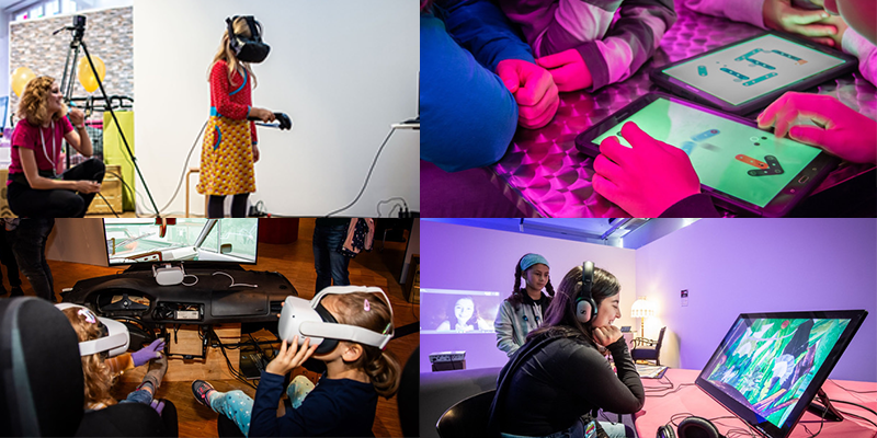 Die Besucherinnen und Besucher erleben fantasievolle Animationen, in denen Kinder aus Farbe, Bewegung und Klang eigene Figuren erschaffen haben. Sie können ein Mixed-Reality-Theaterstück entdecken, das Minecraft und Bühne zu einem gemeinsamen Erlebnis verbindet, oder eine Bassplattform ausprobieren, die Musik in Vibration übersetzt und gehörlosen Menschen neue Zugänge zum Klang eröffnet. Zudem lässt sich eine immersive VR-Experience erkunden, die eine magische Waldwelt mit Licht, Klang und überraschenden Entdeckungen eröffnet.